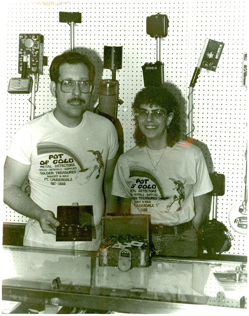 Back in the shop, we talked about the grave-marker recovery project a bit more. Jerry said "You are worried about what you might find, metal detecting in a graveyard and think about the bones in the box under your feet and wonder if they mind you walking over them." A good-sized Garrette Gold Pan suddenly fell off it's perch and clattered to the floor making us all jump. Cindy looked at us and said "Maybe we shouldn't be talking about this." Jerry looked at the fallen gold-pan and just said "Hmmm" The final count was a dozen or more graves that were found by the members of Pot Of Gold Metal Detecting Club, thanks to the hobby some lost souls were found and remembered. I don't know whatever happened to Jerry and Cindy, with 37-years and hundreds of miles between us. I can only hope they are as avid about the hobby as ever...I know a dozen souls that hope so too!
